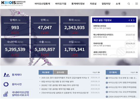 한국바이오산업 정보서비스(KBIOIS)의 개통으로 일반인들도 간편하게 바이오산업에 대한 투자, 매출, 인력, 협력관계, 시도별 현황에 대한 통계 검색은 물론 개인적으로 자주 이용하는 통계를 스크랩해 활용할 수 있게 됐다.