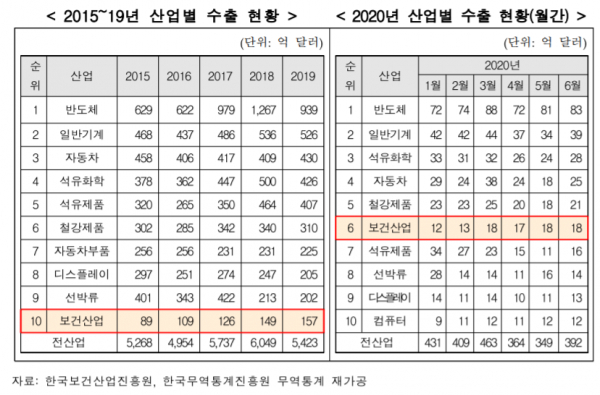 보건산업 수출은 코로나19 확산세가 여전히 꺾이지 않은 가운데 주력산업 및 신수출성장동력 산업으로 견조한 성장세를 이어가고 있다는 게 진흥원 설명이다.