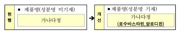현재 단일성분의 의약품만 제품명에 유효성분을 기재하고 있으나, 앞으로는 제품을 쉽게 구분할 수 있도록 복합성분 의약품도 제품명에 유효성분을 함께 기재한다.