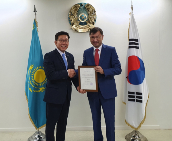 코오롱제약(대표 전재광)은 지난 14일 카자흐스탄 대사관을 찾아 약 4억5000만원 상당의 자사 독감치료제 '코미플루(현탁용분말)' 4만7500개를 기부, 전달했다고 17일 밝혔다.