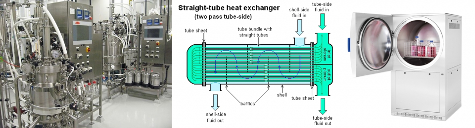 바이오플랜트에서는 크게 세 가지 압력용기가 사용되고 있습니다. 바이오 리액터(세포배양 설비), 열교환기(주사용수 가열 및 냉각 설비), 오토클레이브(각종 용품 멸균·소독설비)가 여기에 속합니다.