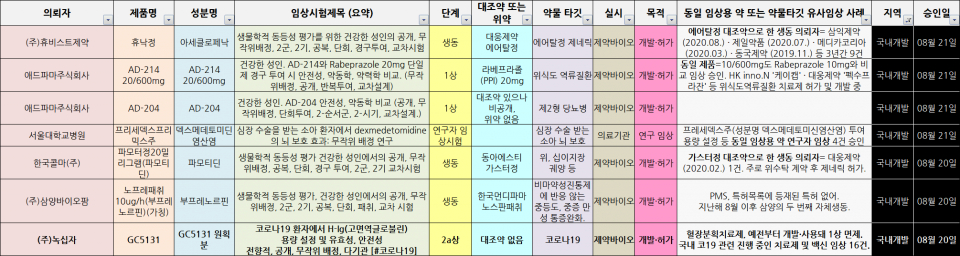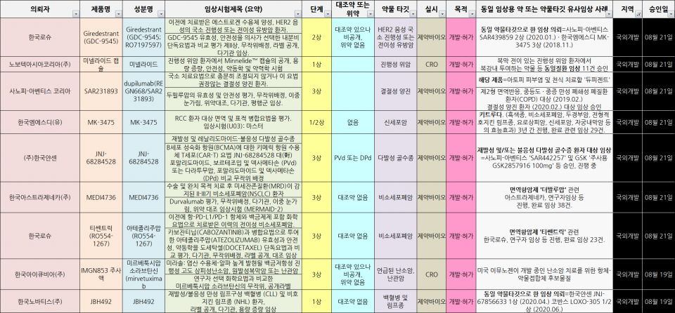 (사진출처=식품의약품안전처 임상시험 승인 현황, 히트뉴스 재정리)
