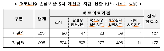 중수본은 감염병전담병원 등 치료의료기관에 대해 지난 4월부터 매월 잠정 손실에 대한 개산급을 지급하고 있다.