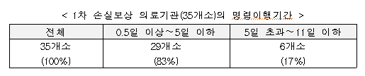 이번 손실보상 의료기관 35개소는 모두 의원급 의료기관으로, 명령 이행 기간이 대부분 5일 이하로 짧다.