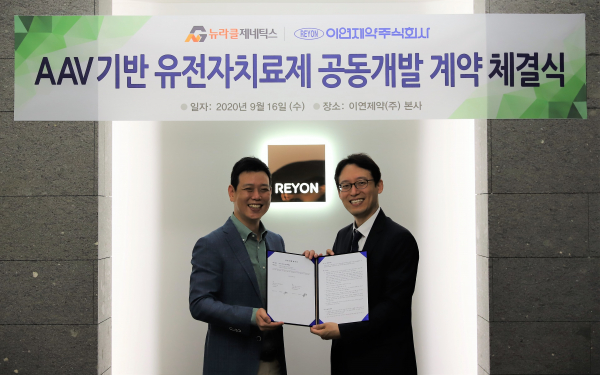 유용환 이연제약 대표는 "이번 계약으로 기존의 pDNA 유전자치료제뿐만 아니라 AAV 기반 유전자치료제 상용화에 한걸음 더 나아갈 수 있게 됐다"며 "뉴라클제네틱스와 공동개발해 글로벌 AAV 기반 유전자치료제 상용화에 노력하겠다"고 했다.