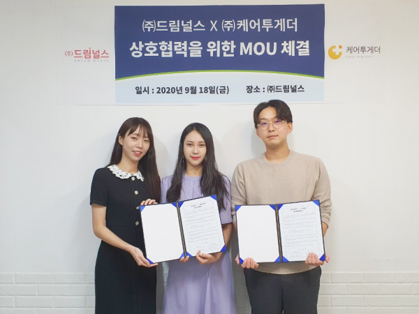 간호사를 위한 에듀테크 드림널스(공동대표 김진선, 노은지)와 환자와 보호자, 간병인을 이어주는 O2O 플랫폼 서비스 케어투게더(대표 김민식)가 헬스케어 사업 협력을 위한 MOU를 체결했다.