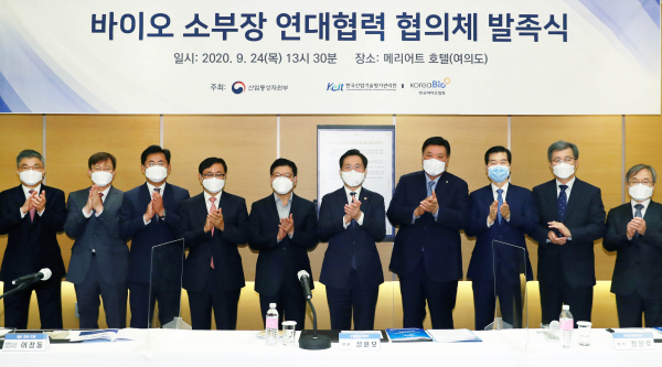 산업통상자원부(장관 성윤모, 이하 산자부)는 지난 24일 바이오 소부장 경쟁력 강화를 위한 '바이오 소부장 연대협력 협의체'를 발족했다고 밝혔다.