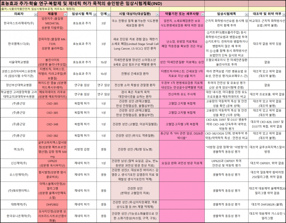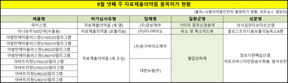 식품의약품안전처 품목허가 현황, 히트뉴스 재정리