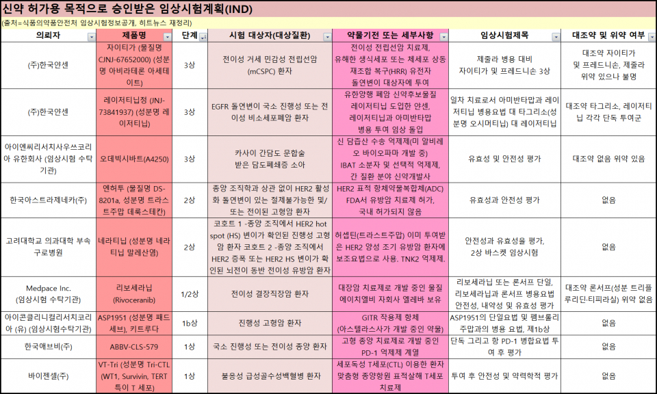 식품의약품안전처 임상시험정보공개 현황 및 히트뉴스 재정리