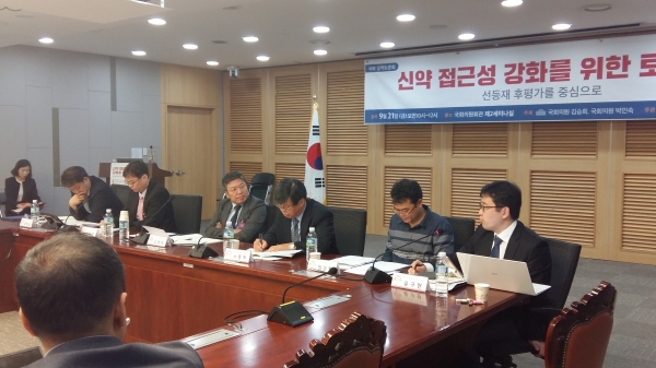 자유한국당 김승희 의원과 같은 당 박인숙 의원이 공동 주최하고 한국암치료보장성확대협력단(KCCA)가 주관해 지난 21일 국회의원회관에서 열린 '신약 접근성 강화를 위한 토론회-선등재후평가를 중심으로' 주제 토론회에서도 마찬가지였다.