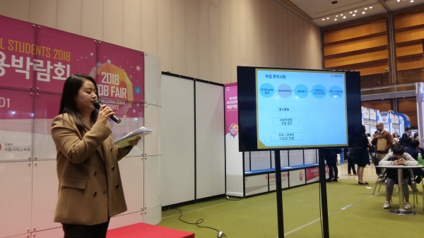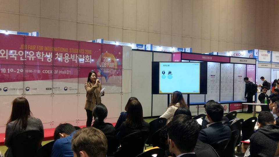 10월 1일과 2일, 양일간 열리는 ‘2018 KOTRA 외국인 유학생 채용박람회’에 대웅제약 글로벌사업본부 미래전략기획팀에서 근무하는 필리핀 출신의 셀레스트 데이비드씨는 한국에서 취업을 희망하는 외국인 유학생들에게 본인의 경험과 취업 노하우를 소개했다. 유창한 한국말로 자신의 이야기를 발표하는 그에게 다양한 국적의 청년들은 조언 한 마디 놓치지 않고 경청했다.