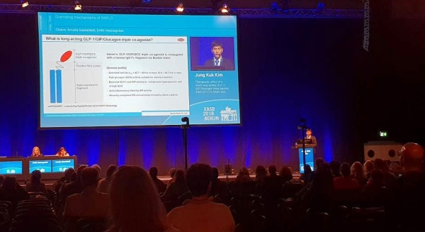현재 임상 1상이 진행 중인 LAPSTriple Agonist는 체내 에너지 대사량을 증가시키는 글루카곤과 인슐린 분비 및 식욕억제를 돕는 GLP-1, 인슐린 분비 및 항염증 작용을 하는 GIP 수용체들을 동시에 활성화하는 바이오신약 후보물질로, 이번에 4건이 구연 및 포스터로 발표됐다.