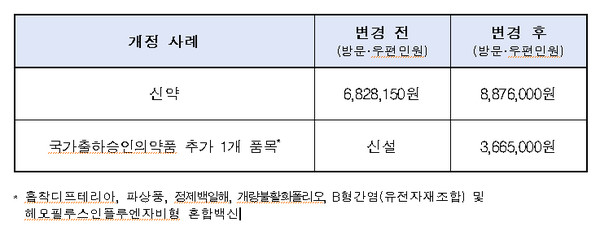 국가출하승인의약품흡착(디프테리아, 파상풍, 정제백일해, 개량불활화폴리오, B형간염<유전자재조합> 및 헤모필루스인플루엔자비형 혼합백신)은 수수료가 신설돼 366만 5000원으로 책정됐다.