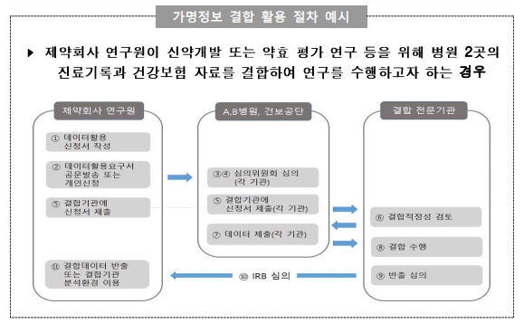 다양한 형태의 정보가 결합가능해 진다. 신약개발 또는 약효평가에서 병원간, 병원과 건강보험공단의 진료기록 등 결합정보를 활용할 수 있게 된다는 뜻이다.