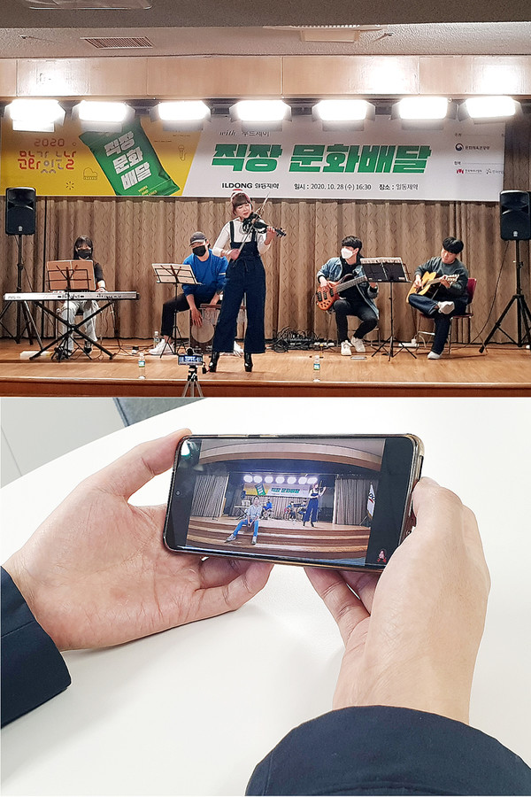 '직장 문화 배달'은 '문화가 있는 날'에 예술단체가 직장 근무지로 찾아가 문화예술 프로그램을 제공하는 행사로, 문화체육관광부와 지역문화진흥원이 주최·주관하고 있다. 이번 행사는 코로나19 상황에 따라 방역 수칙과 사회적 거리두기를 준수한 가운데 일동홀딩스와 일동제약 등 그룹 내 임직원들을 대상으로 진행됐다.