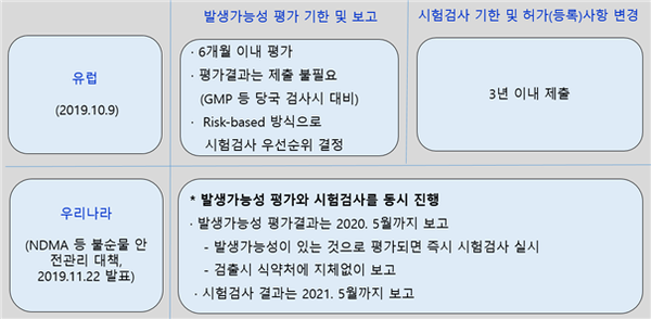 특히, 발생가능성 평가와 시험검사를 동시 진행하도록 조치한 것은 원료의약품 제조업체에 발생가능성 평가결과를 먼저 받아 봐야 하는 완제의약품 제조업체의 사정상 발생가능성 평가와 시험검사를 동시에 진행하는 것은 무리한 일이었다.