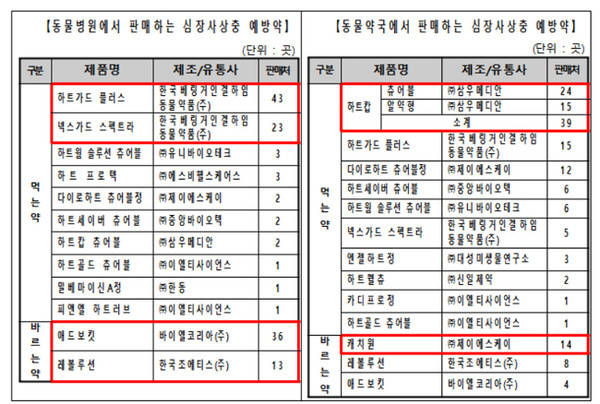 동물병원과 동물약국에서 주로 취급하는 심장사상충 예방약은 다른 것으로 나타났다.