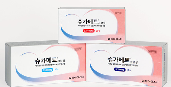 동아에스티는 지난 27일 '슈가메트5/1000mg(성분명 에보글립틴/메트포르민)'의 수출용 허가를 받았다.
