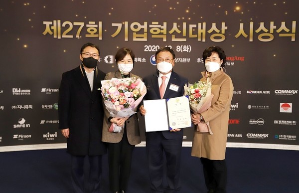 한국팜비오(회장 남봉길)가 지난 8일 '제27회 기업혁신대상'에서 국무총리상을 받았다. 1994년 제정된 이 상은 산업통상자원부, 대한상공회의소 등이 주관하는 시상식으로 기업의 경영혁신 우수사례를 발굴하고 확산하기 위해 경영혁신 성과가 우수한 기업에게 수여한다.