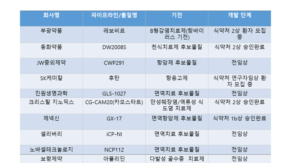 이 외에도 SK케미칼은 항응고제 후탄에 대해서 연구자 주도 임상시험을 위해 환자를 모집 중이다. 전임상 단계의 파이프라인으로는 ▷셀리버리 면역치료 후보물질 ‘iCP-NI’ ▷노바셀테크놀로지 면역치료 후보물질 ‘NCP112’ ▷보령제약의 다발성 골수종 치료제 ‘아플리딘’ 등이 있다.