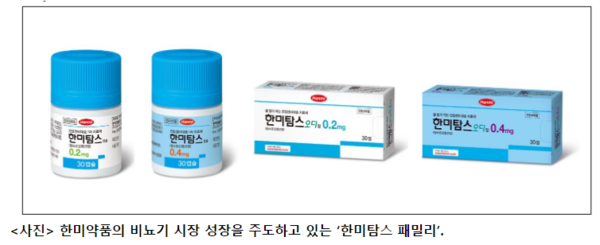 한미약품은 전립선비대증을 비롯해 과민성방광, 발기부전 치료제 등 비뇨기 질환 치료제 라인업을 구축해 의사와 환자가 신뢰할 제약사가 되겠다는 목표다. 또한 복합제, 특허 회피 등으로 후발약을 계속 출시하며 근거 중심의 임상 데이터를 구축해 시장 파이를 더 갖겠다는 목표다.