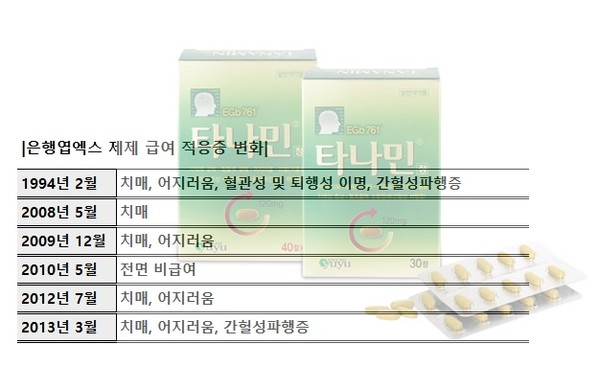 은행엽엑스 제제는 재평가와 악연이 있다. 급여 적응증 제외와 추가, 급여 삭제와 재등재 등의 과정을 겪었던 것.