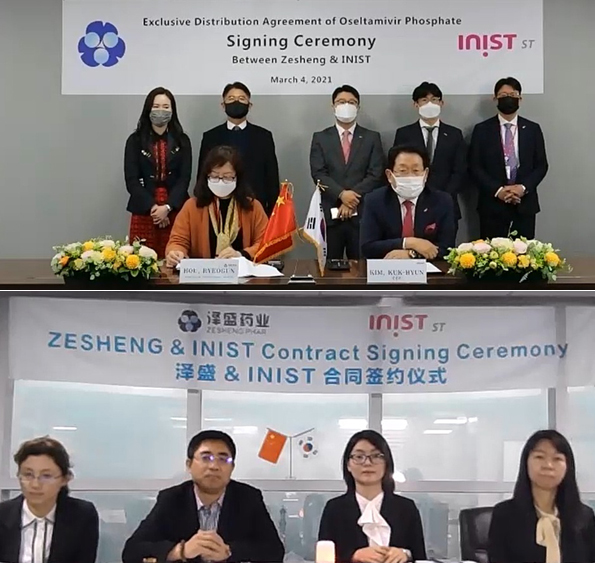 이니스트에스티(대표 김국현)는 중국 제승제약(泽盛药业·Guangdong Zesheng Pharmaceutical)과 오셀타미비르(Oseltamivir) 수출 공급계약을 체결했다고 5일 밝혔다.
