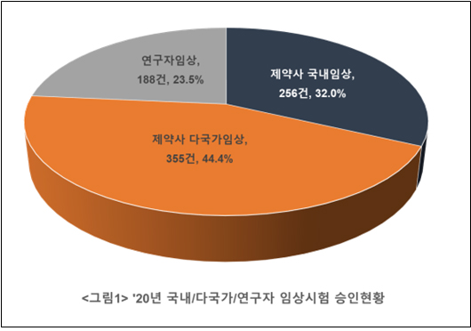지난해 승인된 임상시험은 799건으로 2018년 679건, 2019년 714건까지 3년간 지속 증가했다.