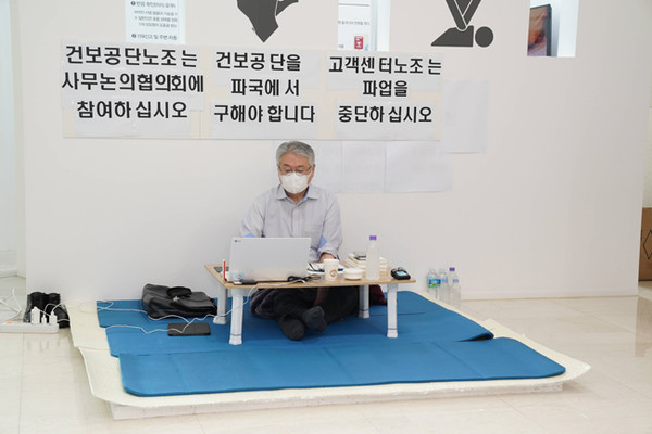 김 이사장의 요청은 고객센터 노조의 파업 중단과, 건보공단 노조의 사무논의협의회 참여다.