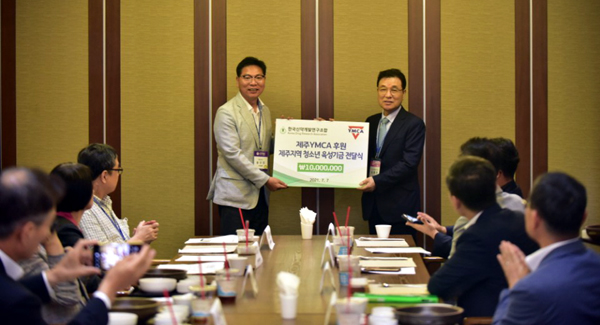 신약조합은 인터비즈 바이오 파트너링&투자포럼 운영 사무국으로 9개 조직위를 대표, 첨단 산업 인재육성과 지역발전을 위해 제주YMCA에 제주지역 청소년 육성기금 1000만원을 전달하며 선순환의 나눔활동이 진행되길 바란다는 후원의 뜻을 전했다.