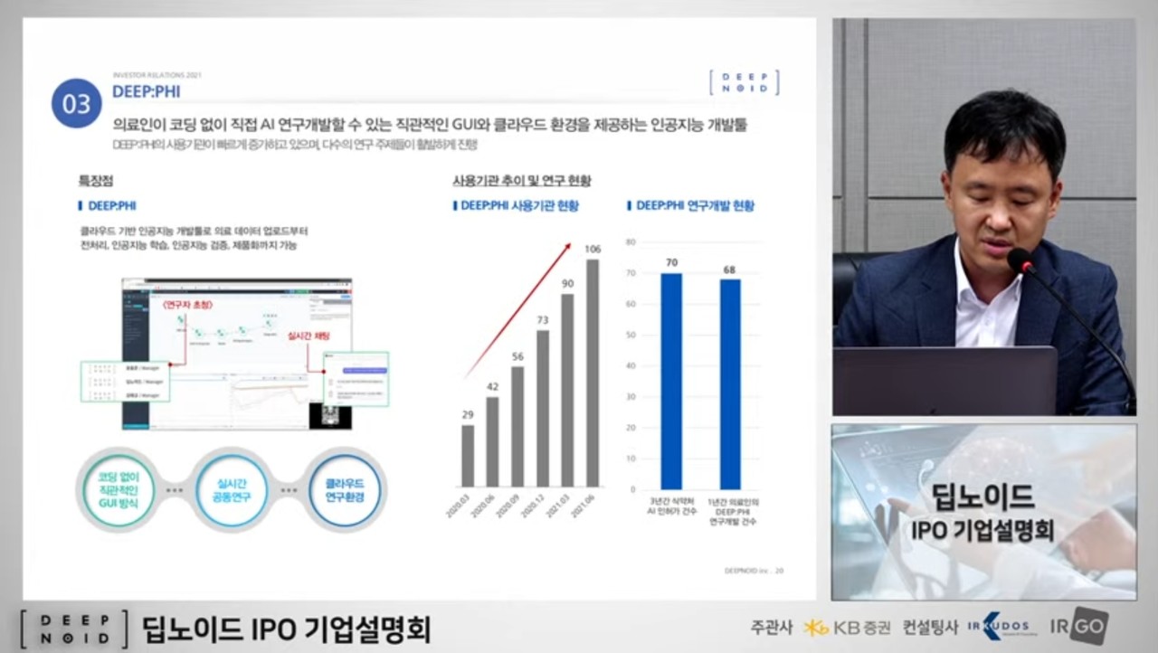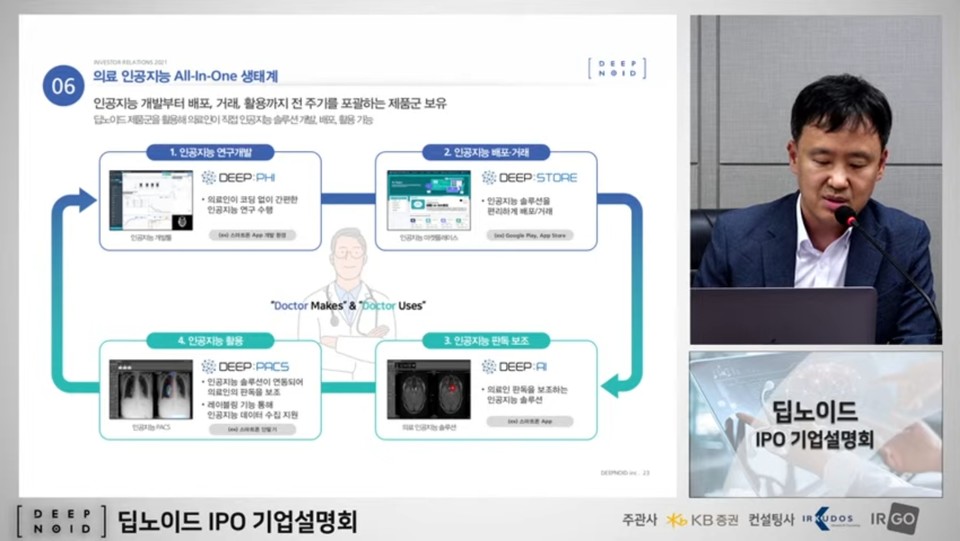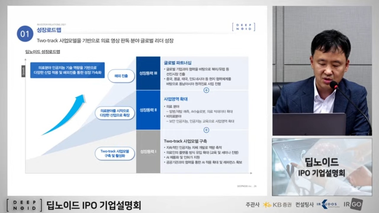 오는 4,5일 공모 및 17일 코스닥 상장을 앞둔 딥노이드는 2일 온라인 기업설명회(IPO)를 유튜브 공식채널에서 진행하며 주력 제품과 향후 사업계획 등을 소개했다.