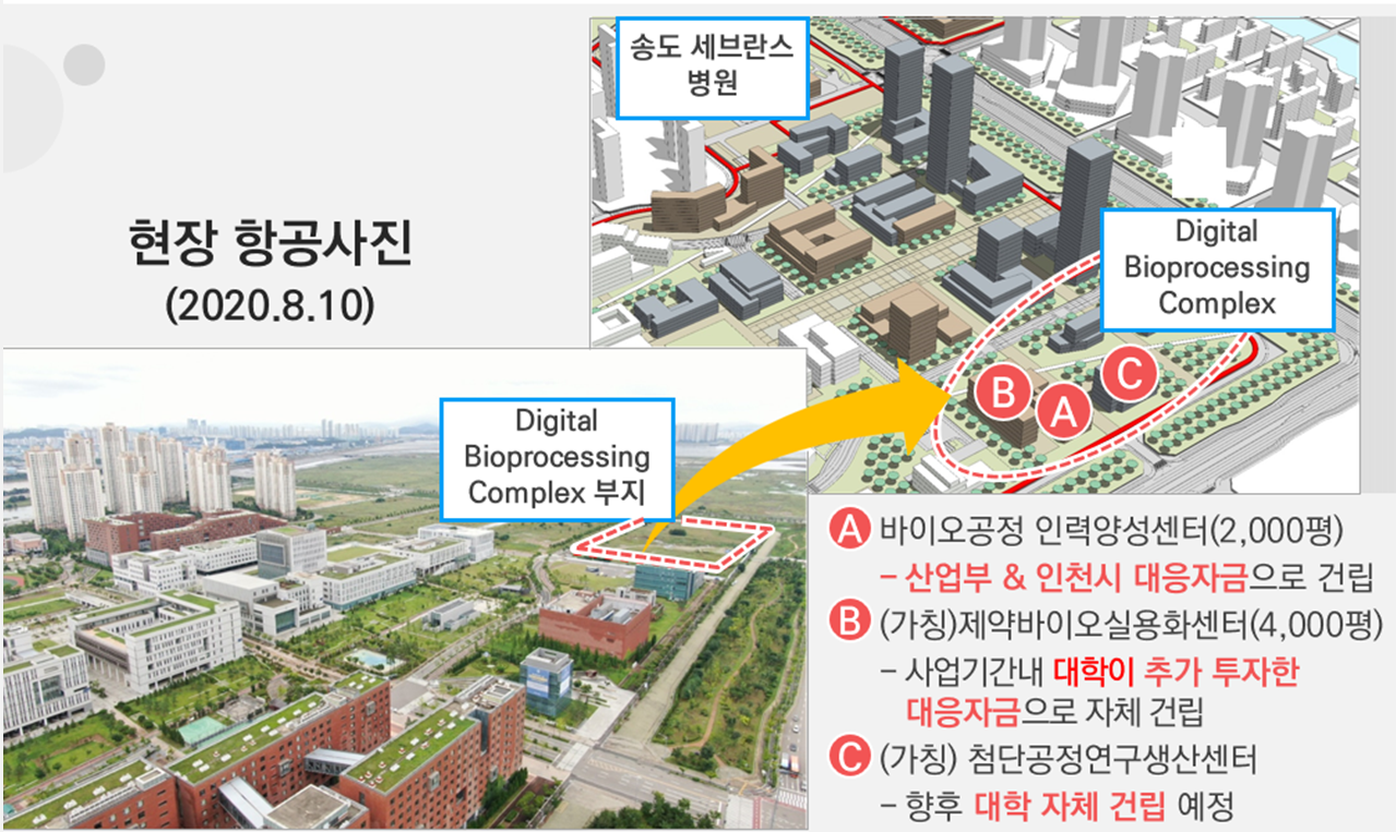예. 올해 착공에 들어갔습니다. 참고로 송도세브란스병원과-교육시설 건너편 하얀 부분이 이번에 'K-바이오랩센트럴'이 들어설 기획을 하고 있습니다. 산·학·연·병을 아우르는 글로벌 바이오센터의 입지를 갖추고 있다고 자신합니다.