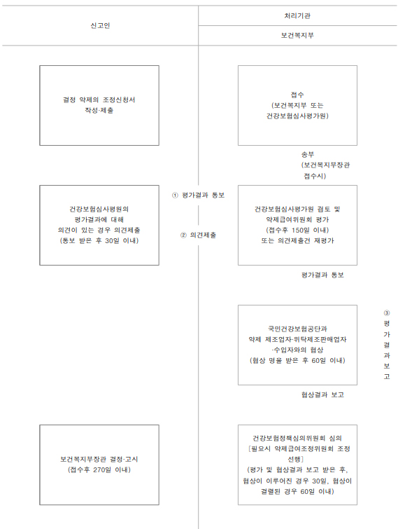 결정약제의 조정신청서는 보건복지부 또는 심평원에 접수할 수 있습니다. 심평원은 조정신청을 검토해 약평위 평가를 진행하게 되는데, 접수 후 150일 이내 결과가 나오게 될 것으로 보입니다.