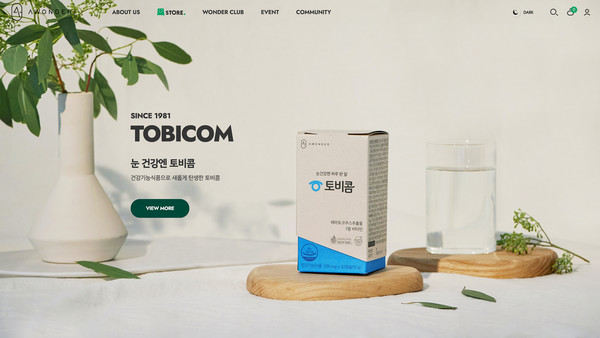 에이원더 몰은 안국약품의 건강기능식품, 의료기기, 화장품을 체험하고 쇼핑할 수 있는 브랜드 쇼핑몰이다. 제품 구매뿐만 아니라 건강과 관련된 다양한 콘텐츠를 제공하고 소비자들의 눈의 피로감을 덜어주기 위해 다크모드 기능을 탑재했다.