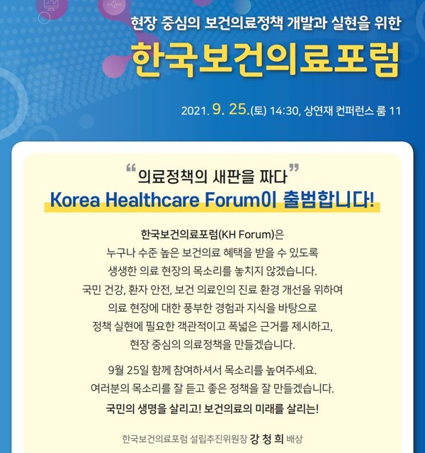 KH포럼 설립추진위원장은 대한의사협회 상근부회장직을 지냈던 강청희 전 국민건강보험공단 급여상임이사가 맡았다.