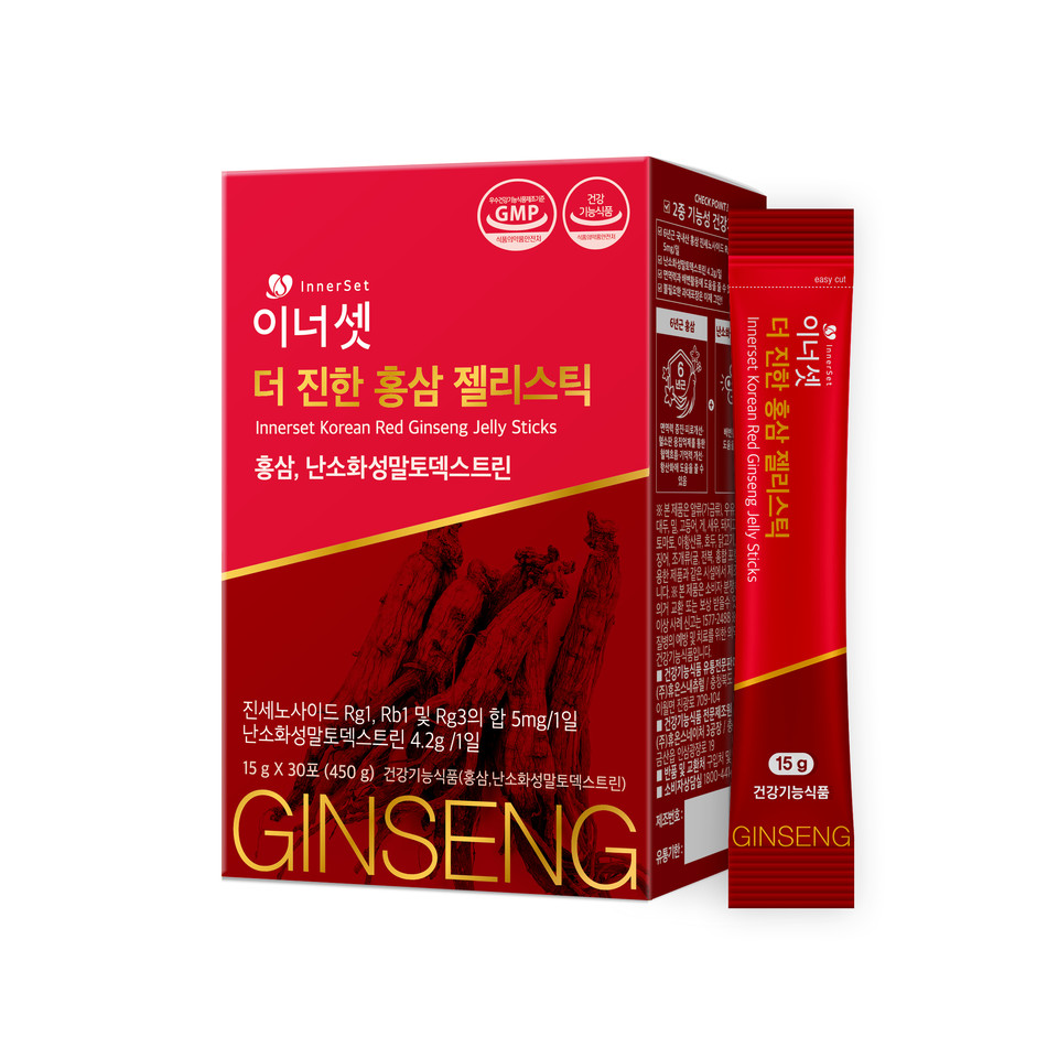 휴온스내츄럴(대표 이충모)은 건강식품 브랜드 '이너셋'이 홍삼 5대 기능성에 난소화성말토덱스트린(이하 식이섬유)을 더한 6중 복합기능성 건강기능식품 ‘이너셋 더 진한 홍삼 젤리스틱’ 을 출시했다고 8일 밝혔다.
