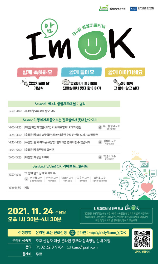 이번 행사는 '암이어도 괜찮아, I'm(암) OK'를 주제로, 코로나로 인해 더욱 힘들었을 암 환우들에게 올바른 항암치료 정보를 제공하고, 무엇보다 국내 항암치료 기술 발전으로 인해 더이상 암이 극복하지 못할 질환이 아니라는 긍정적인 메시지를 전달하고자 기획됐다.