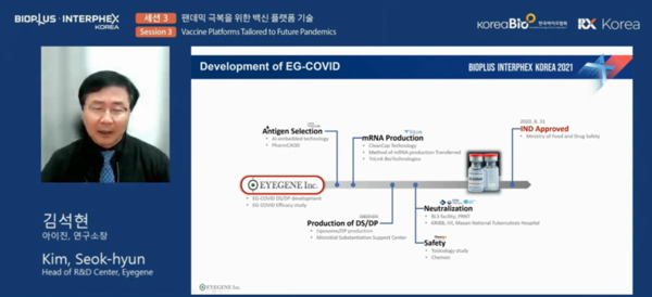 아이진 김석현 연구소장은 28일 개최된 '바이오플러스-인터펙스 코리아 2021' 콘퍼런스에서 이 같이 말했다.