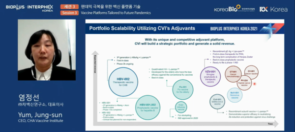 차백신연구소 염정선 대표는 "차백신연구소는 최근 코스닥에 상장된 벤처기업이다. 차병원그룹의 산학인프라는 (차백신연구소의) 연구개발에 있어 큰 경쟁력이 되고 있다. 현재 차백신연구소는 새로운 백신을 개발할 수 있고 치료 백신의 개발 영역으로 확장하고 있다"고 밝혔다.