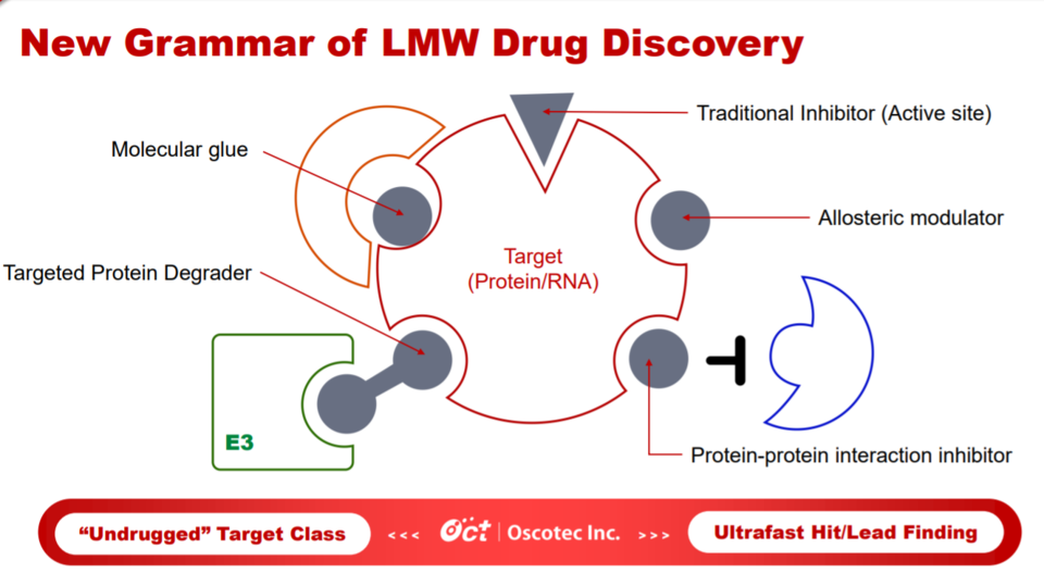 이러한 배경에서 아직 구체적으로 내세울 수 있는 단계는 아니지만, 오스코텍은 현재 완전히 새로운, 이른바 'undruggable' 타깃 클라스에 도전하고 있습니다. 또 다른 한편으로는 타깃 결합 물질(binder)을 초고속으로 검색할 수 있는 획기적인 스크리닝 기술을 구축하고자 노력하고 있습니다.
