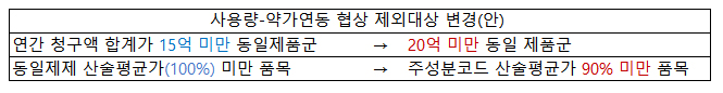 주요 내용은 △청구금액 제외기준 상향△산술평균 제외기준 조정, △'동일제제'를 '주성분코드'로의 변경 등이다.