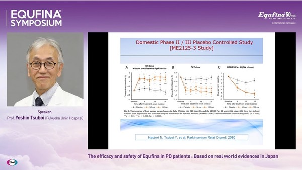 후쿠오카 의과대학 신경과 요시오 츠보이(Yoshio Tsuboi) 주임교수가 화상을 통해 일본 파킨슨병 환자를 대상으로 한 에퀴피나의 임상 연구 결과를 설명했다.
