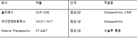 Nav1.7 저해제 임상개발 현황을 살펴보면 3개사가 두각을 보이는데, 이들 중 2곳이 국내사다.