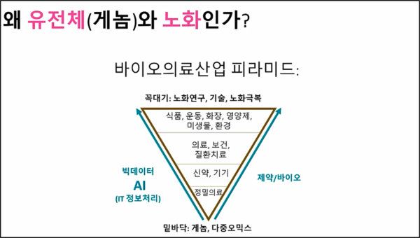 이어 그는 "노화는 만병의 근원이며, 이를 해결하기 위해 극노화가 필요하다"며 "이러한 지능적 정밀의료가 복지형 정밀의료로 거듭나야 한다"고 덧붙였다.