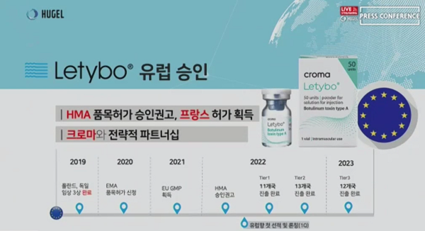 회사 관계자는 "2020년 6월 유럽 11개국 품목허가 신청 후 약 1년 7개월 만에 획득한 이번 승인 권고는 휴젤의 유럽 진출을 알리는 신호탄으로, 이를 기반으로 즉시 주요 5개국을 비롯한 11개국 국가별 승인절차(National phase)에 돌입한 바 있다"며 "지난달 27일 프랑스에서 가장 먼저 품목허가 절차를 완료, 1분기 유럽향 첫 선적 및 국내 톡신 기업 최초의 유럽 론칭을 앞두고 있다"고 설명했다.
