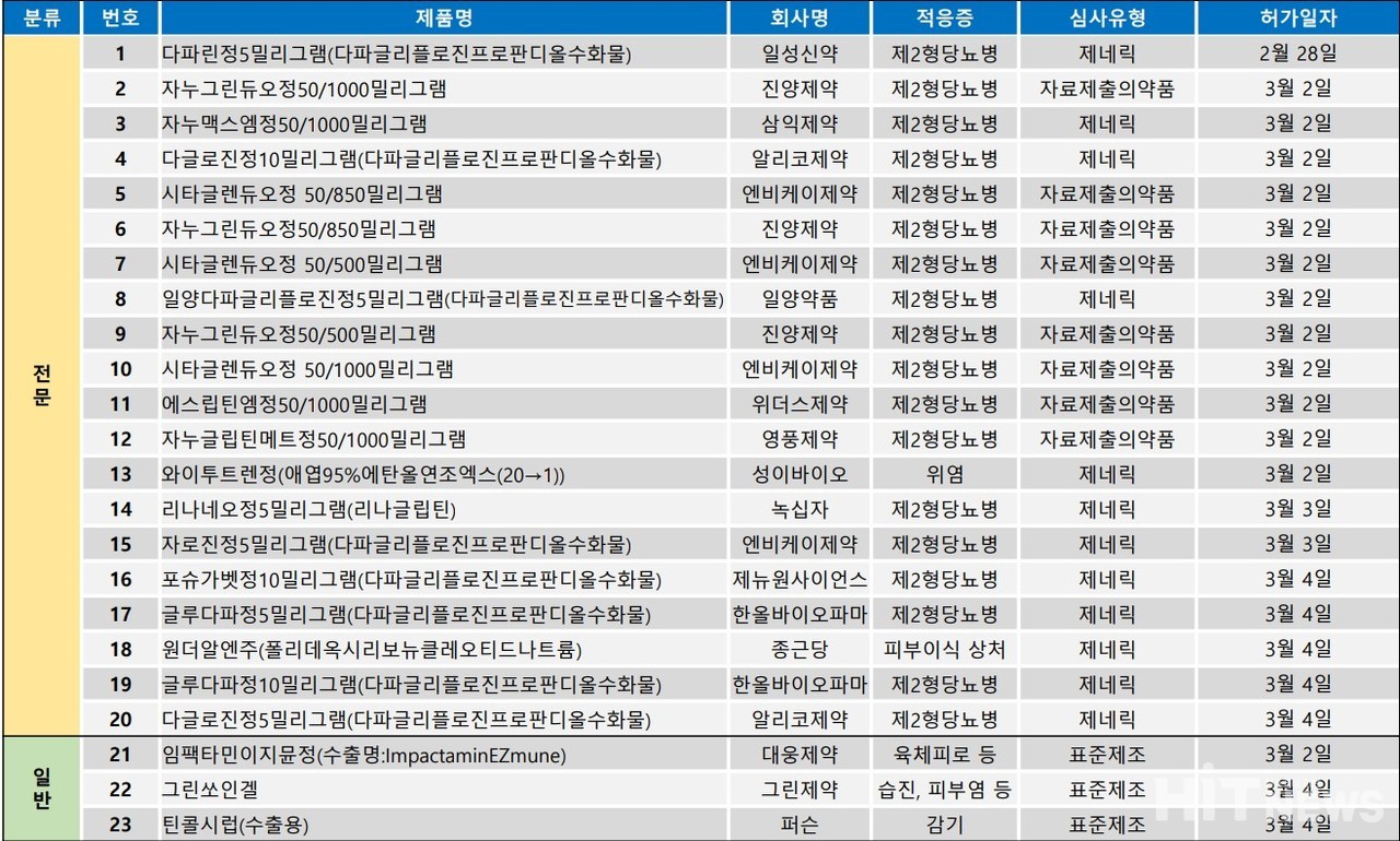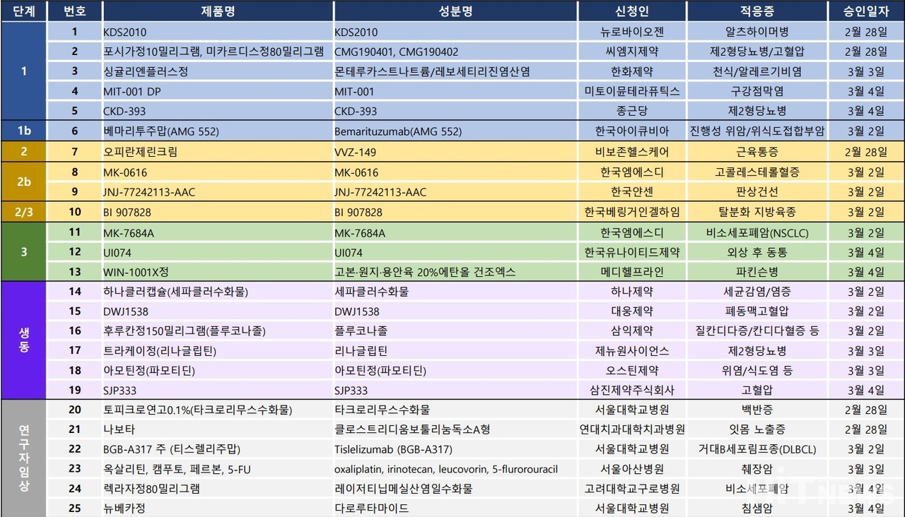 황기자의 주간 의약품 품목허가/임상승인 모아보기(2월28일~3월4일)