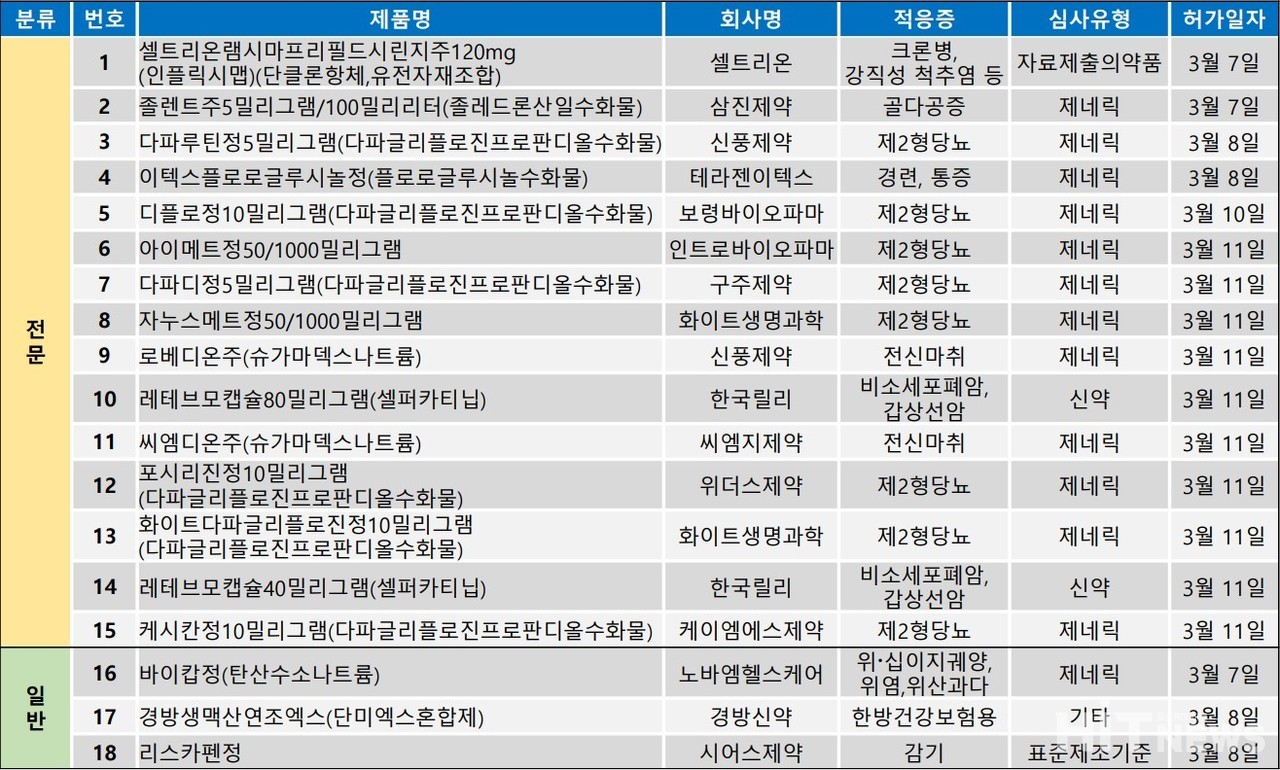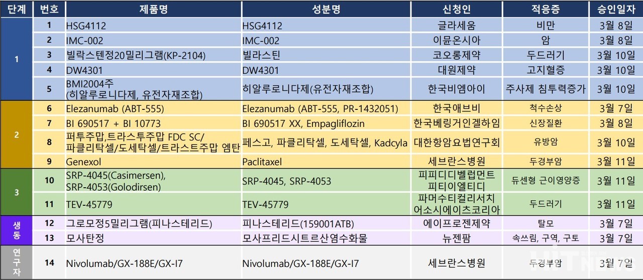 황기자의 주간 의약품 품목허가/임상승인 모아보기(3월7일~3월11일)