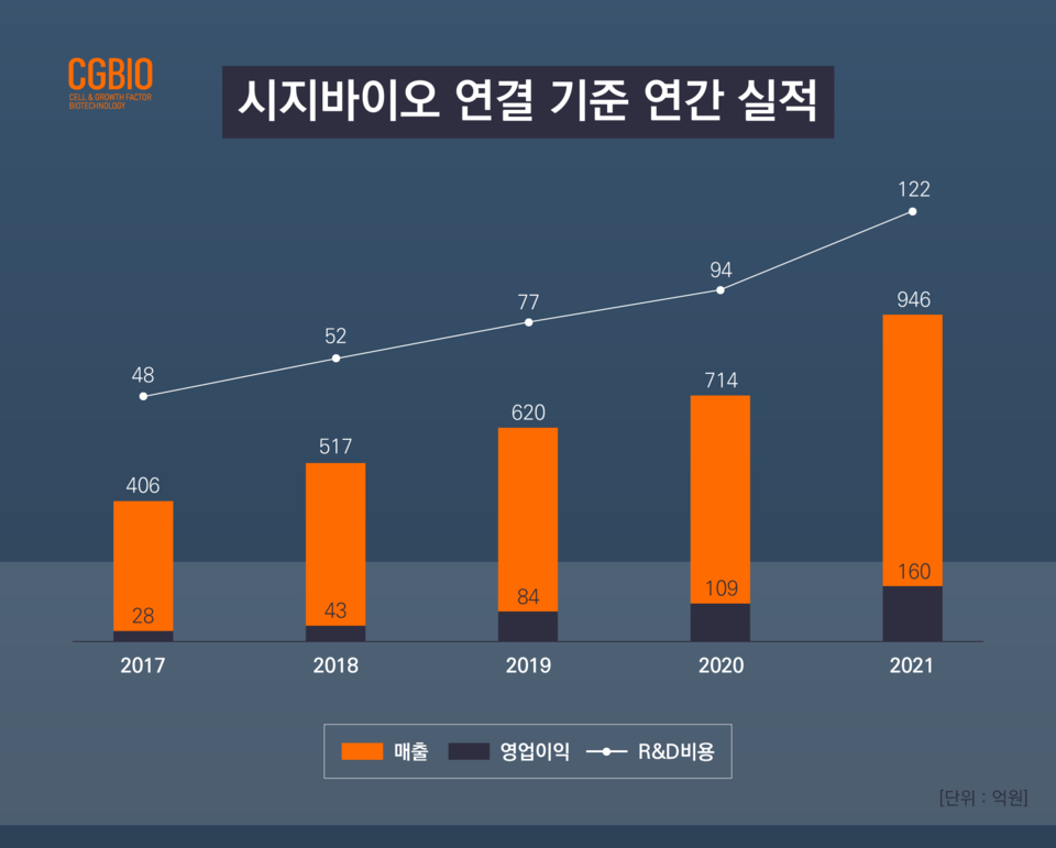바이오 재생의료 전문기업 시지바이오(대표이사 유현승)가 지난해 연결기준 매출액 946억 원, 영업이익 160억 원을 기록, 역대 최대 실적을 달성했다고 5일 밝혔다.