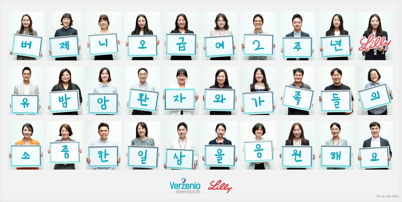 한국릴리(대표 알베르토 리바)가 호르몬 수용체 양성(HR+) 및 사람 상피세포 성장인자 수용체 음성(HER2-) 진행성 및 전이성 유방암 치료제 버제니오(성분 아베마시클립)의 급여 2주년을 기념해 임직원과 함께 유방암 환자의 건강한 삶을 응원하는 사내 캠페인을 진행했다.