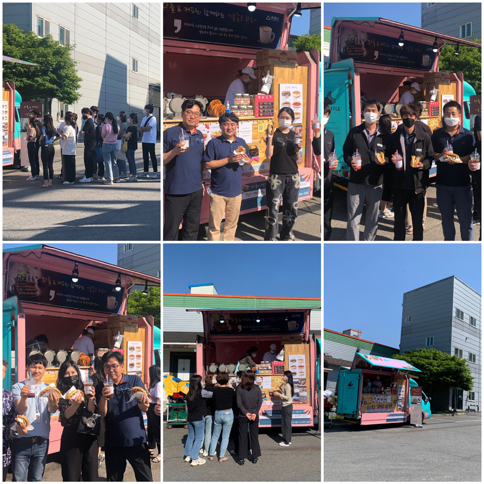 '와플 & 커피와 함께하는 기분좋은 하루~'라는 이름으로 진행된 스페셜 이벤트가 몸도 마음도 출출한 퇴근시간 무렵이라 직원들의 호응은 좋았다. 애초 단발 이벤트로 마련됐으나 반응이 좋아 직원복지향상 차원에서 직원들이 희망하는 형식의 행사로 계속 이어가기로 했다.